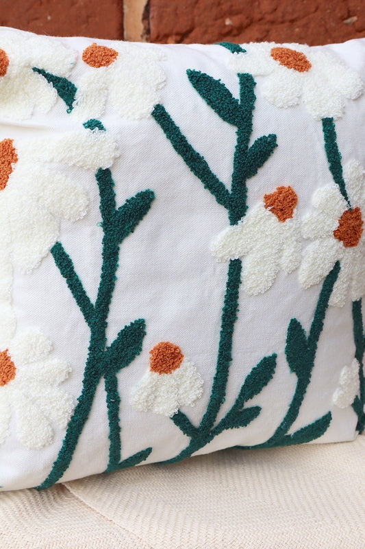 Capa de Almofada Bordada em Linho 45x45 Flores EST012