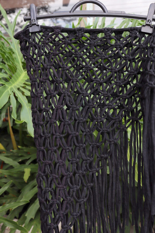 Saída de Praia Crochê Macramê Luxo Longa em Malha Preta