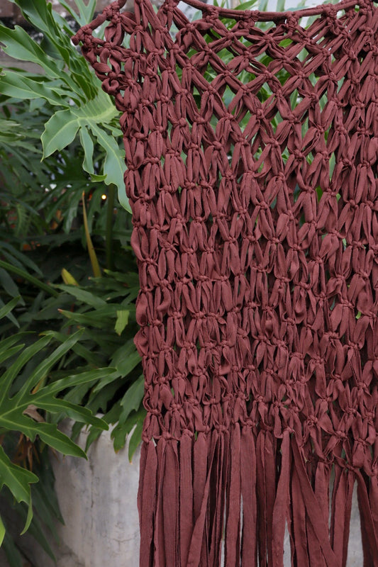 Saída de Praia Crochê Macramê Luxo Longa em Malha Marrom