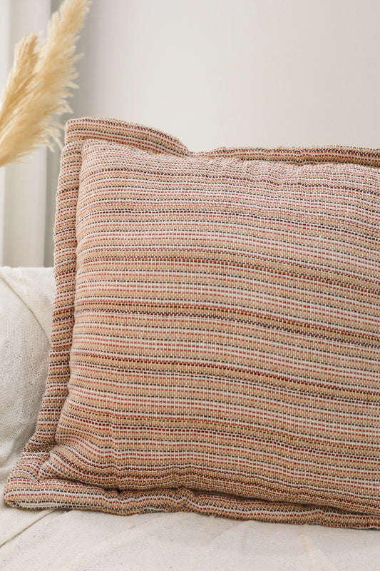 Capa de Almofada em Linha 100% Algodão Listrada Bege e Cru 50x50