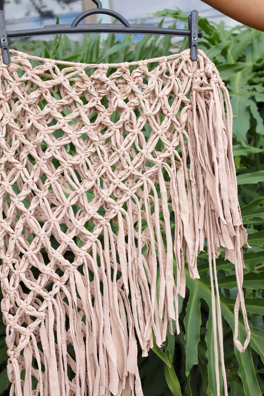 Saída de Praia Crochê Macramê Curta Recorte Luxo em Malha Bege