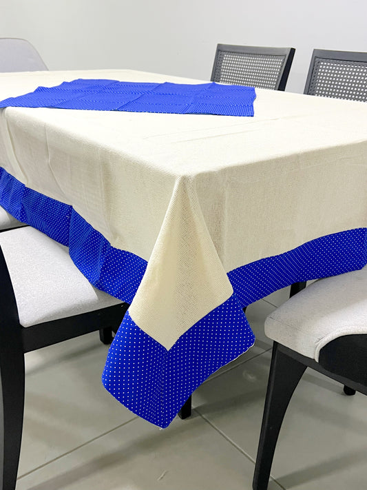 Toalha de Mesa com Barra de Tricoline Poá Azul com Composê 1,50x3,00m