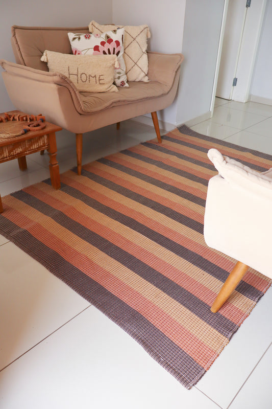 Tapete em Linha Listrado Terracota, Marrom e Café com Leite 1,50x2,00m