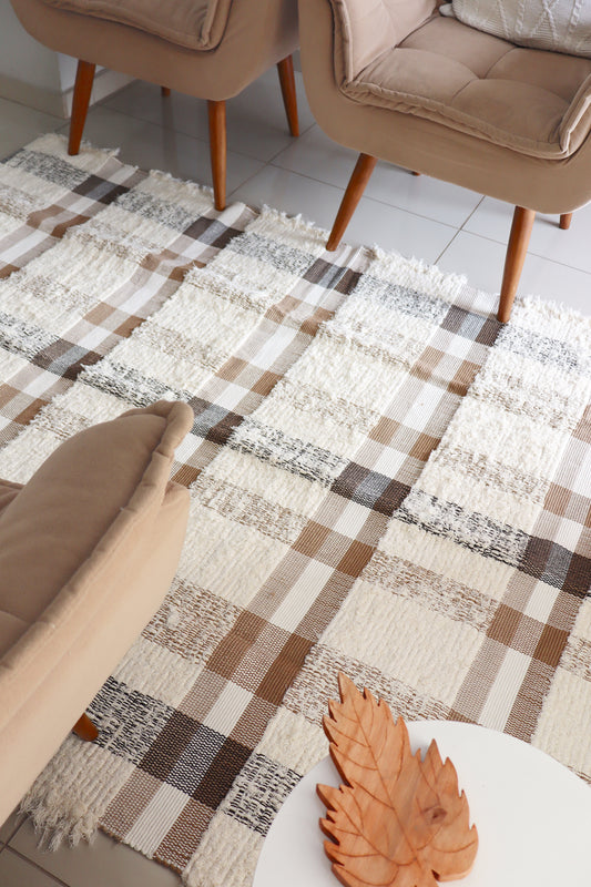 Tapete Algodão Felpudo Chic Xadrez Caramelo 1,50x2,00m