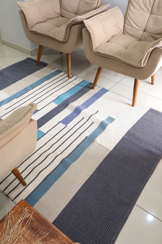 Tapete Linha Trabalhado Listras Azul 1,50x2,00m
