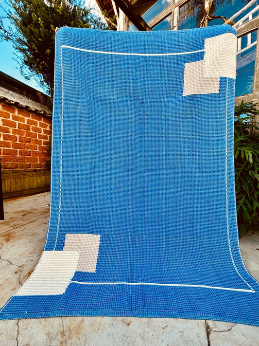 Tapete Linha Trabalhado Moldura Azul 1,50x2,00m