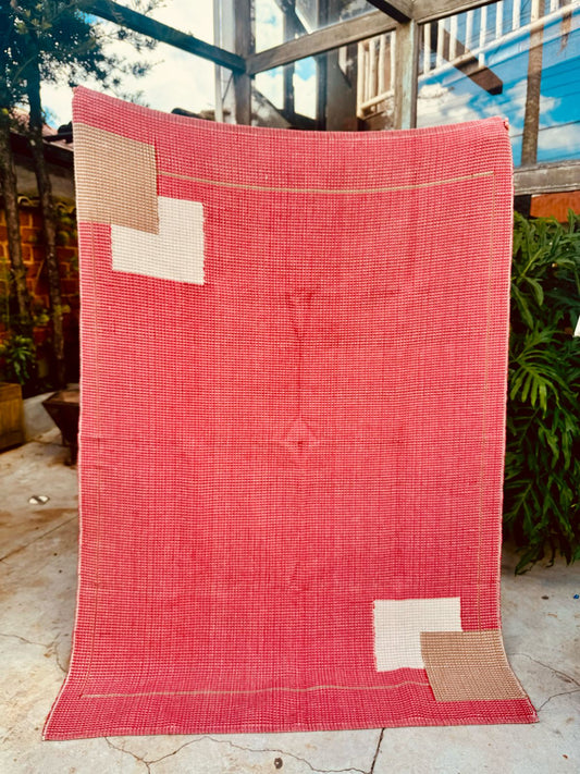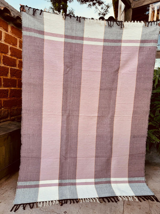 Tapete Algodão Bordado Listrado Chic Rosê/Rosa Seco 1,50x2,00m