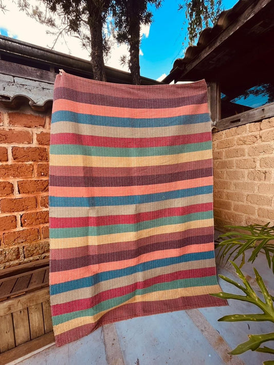 Tapete Algodão Puxadinho Pompom Colorido Arco Íris 2,00x2,50m