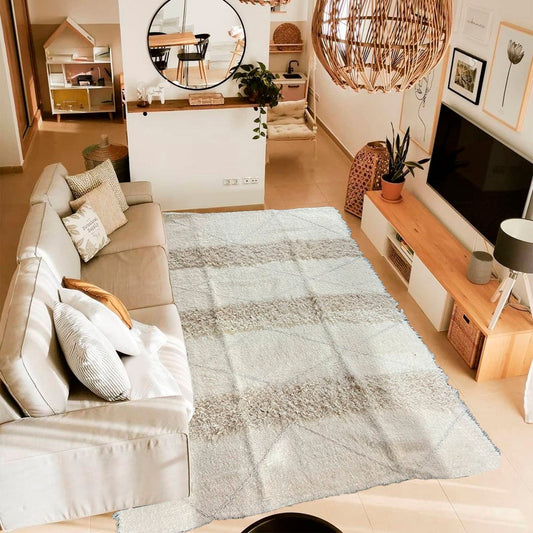 Tapete em Linha Listrado Azul e Cru 2,00x2,50m
