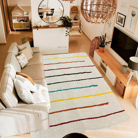 Tapete Algodão Bordado Listrado Chic Cru 2,00x2,50m