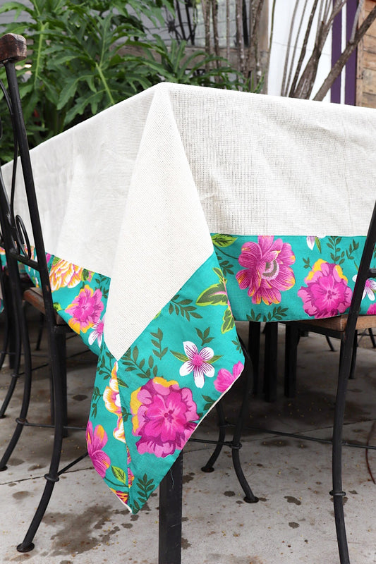 Toalha de Mesa Quadrada Com Barra em Chita Verde Mesa 8 Lugares 2,40x2,40m