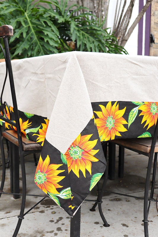 Toalha de Mesa Quadrada Com Barra em Chita Amarela Mesa 8 Lugares 2,40x2,40m