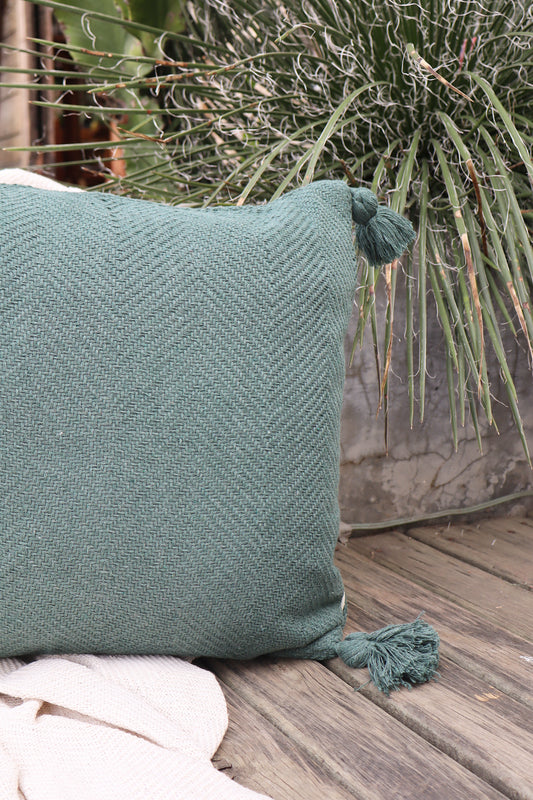 Capa de Almofada Boho Escama com Pompom Lisa Verde Musgo 45x45