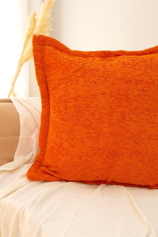 Capa de Almofada em Chenille com Aba Lateral Laranja 45x45