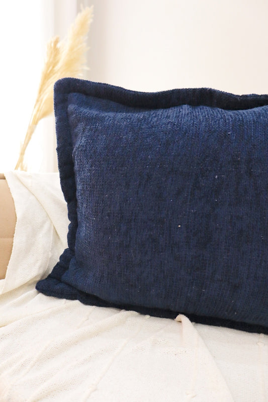 Capa de Almofada em Chenille com Aba Lateral Azul Escuro 45x45