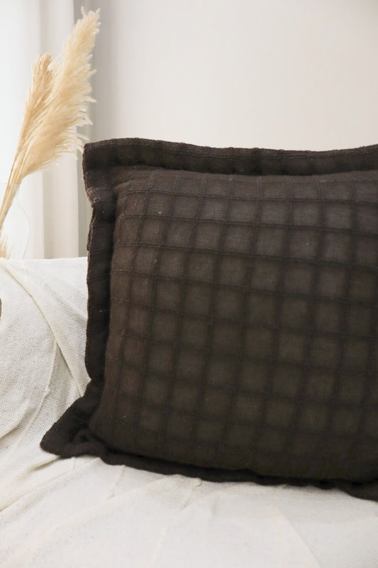 Capa de Almofada em Gorgurinho Grid Preta 45x45
