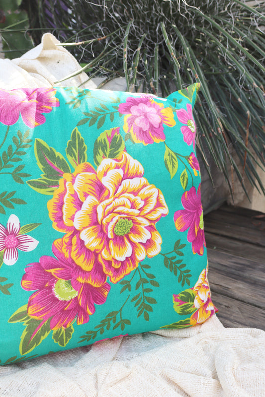 Capa de Almofada Impermeável Belize Floral Azul 65x65