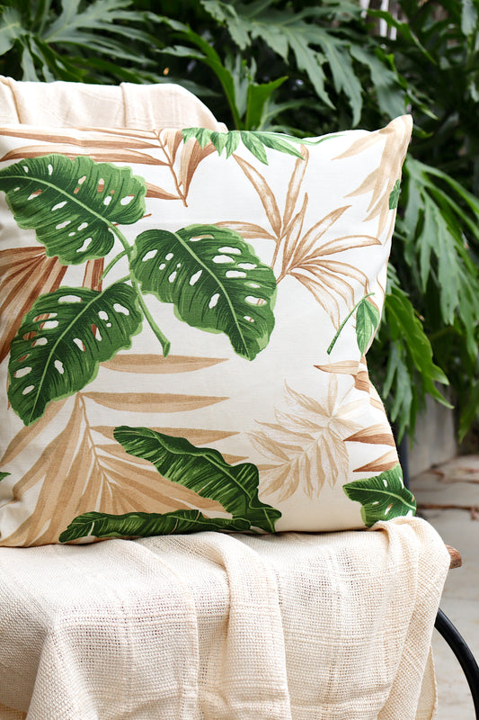 Capa de Almofada Impermeável Belize Folhas Bege Claro 65x65