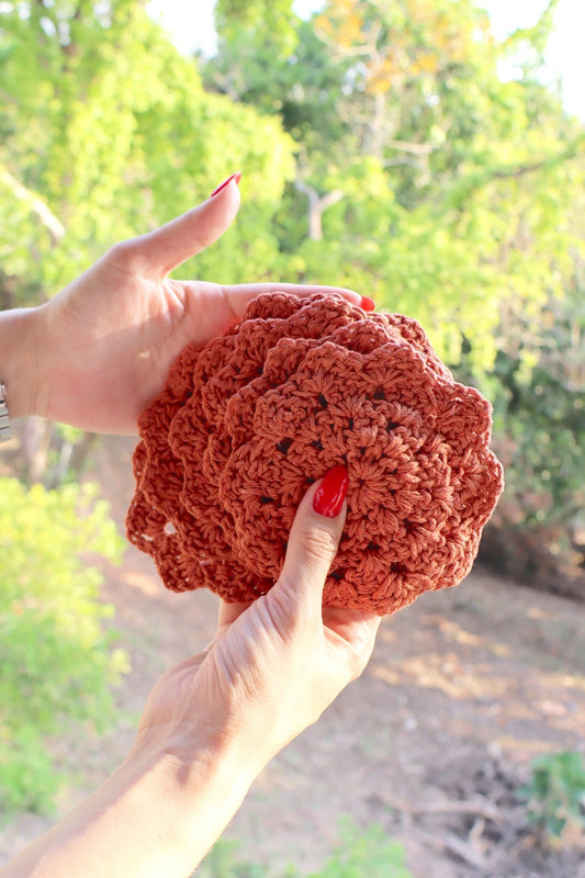 Kit 6 Porta Copos / Descanso Para Copos em Malha Terracota