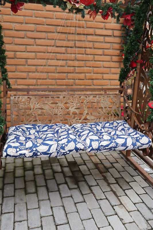 Almofada Futon Dupla Impermeável 1,10x0,50m Floral Azul