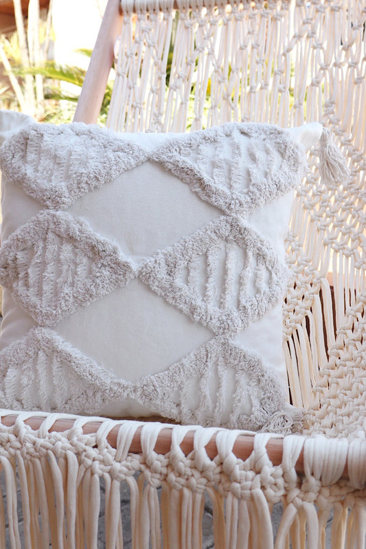 Capa de Almofada Boho Trançada Crochê Cru EST001 45x45