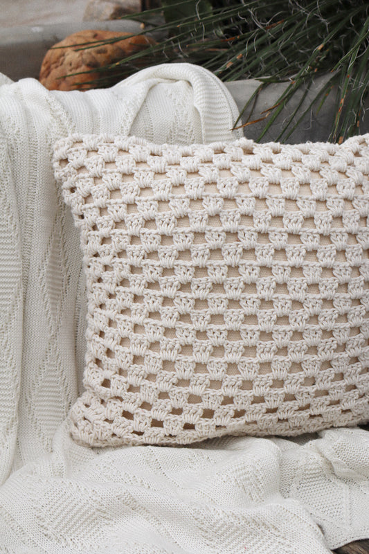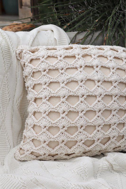 Capa de Almofada Boho Trançada Crochê Cru EST004 45x45