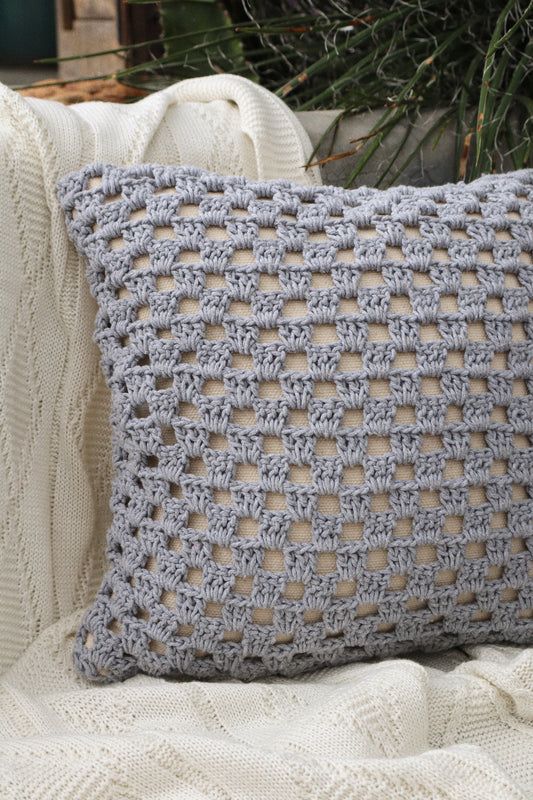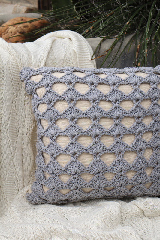Capa de Almofada Boho Trançada Crochê Cinza EST002 45x45