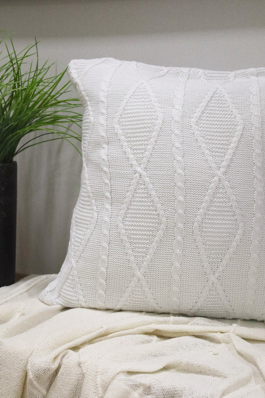 Capa de Almofada Decorativa Trico Branca 45x45cm