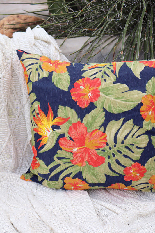 Capa de Almofada em Gorgurinho Flores Azul Marinho 45x45