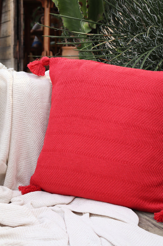 Capa de Almofada Boho Escama com Pompom Lisa Vermelha 45x45