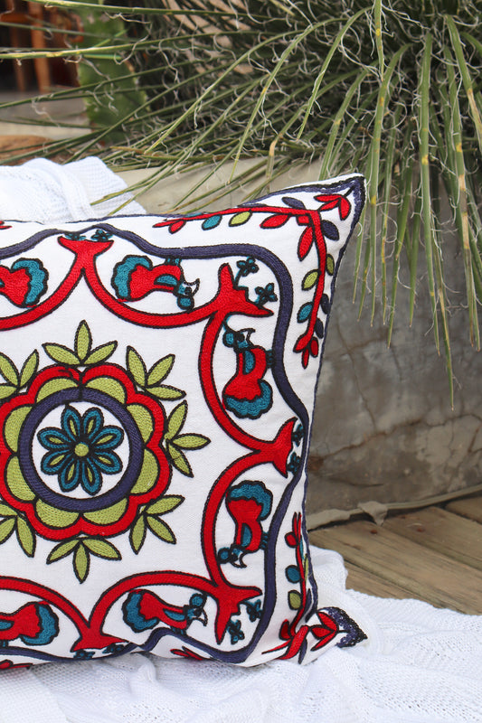 Capa de Almofada Bordada em Linho 45x45 Verde e Vermelha