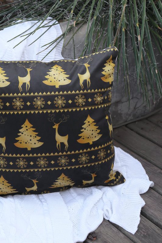 Capa de Almofada Decorativa Natal Preta e Dourada