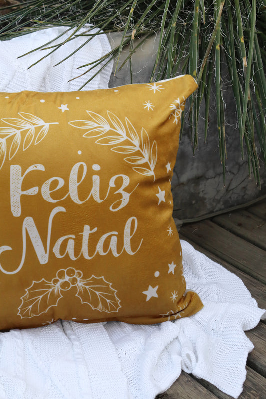 Capa de Almofada Decorativa Feliz Natal Dourada