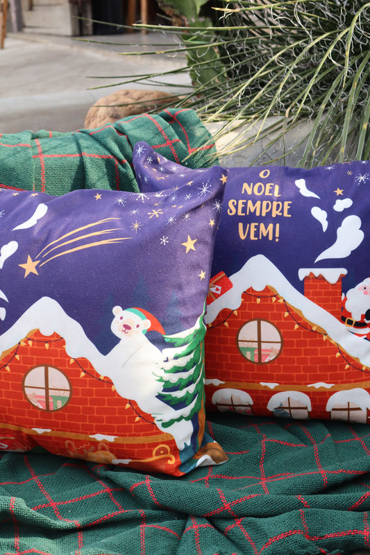 Capa de Almofada Decorativa Dupla Face Natal O Noel Sempre Vem