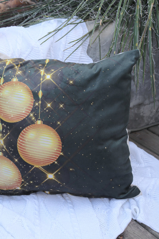 Capa de Almofada Decorativa Natal Bolas Verde e Dourada