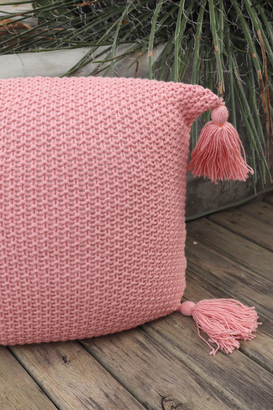 Capa de Almofada Pompom Decorativa Tricô Rosa Claro 45x45cm