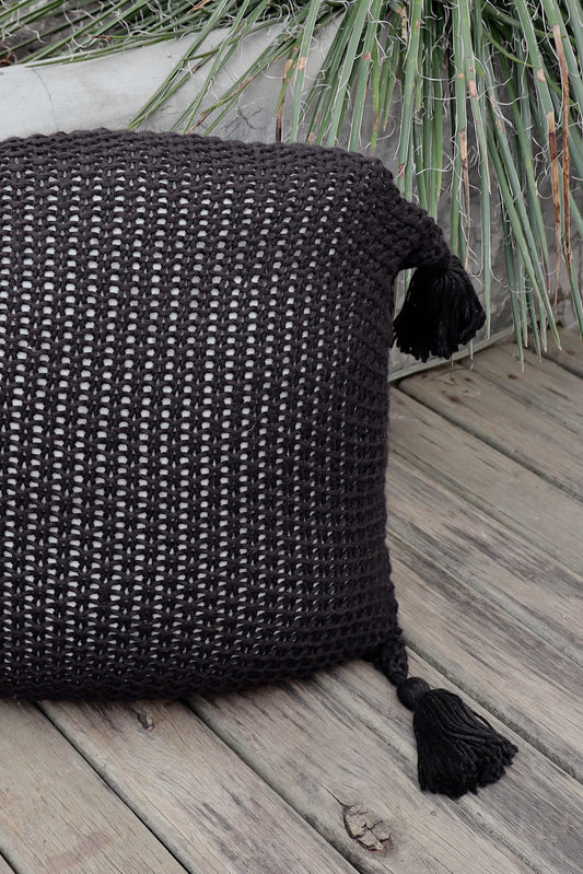 Capa de Almofada Pompom Decorativa Tricô Preta 45x45cm