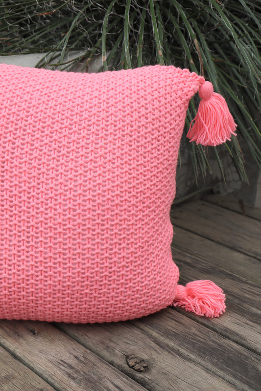 Capa de Almofada Pompom Decorativa Tricô Rosa Neon 45x45cm