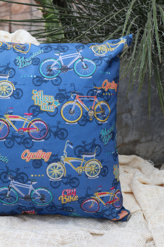Capa de Almofada Suede Estampada Bicicletas Azul 45x45cm