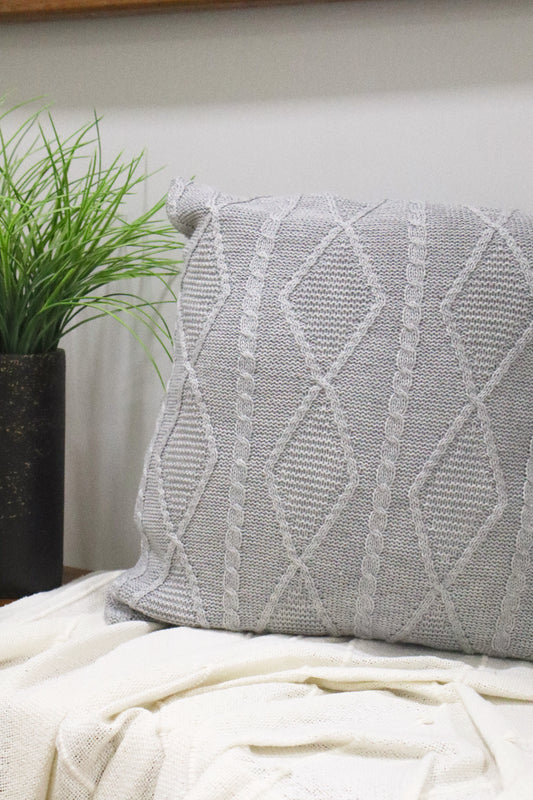 Capa de Almofada Decorativa Trico Cinza Claro 45x45cm