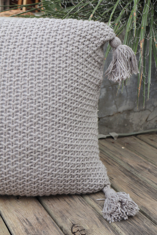 Capa de Almofada Pompom Decorativa Trico Cinza 45x45cm