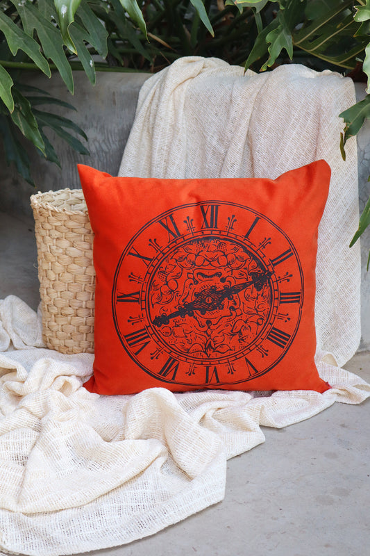 Capa de Almofada Suede Estampada Bússola Laranja 45x45cm