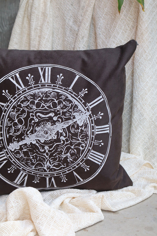 Capa de Almofada Suede Estampada Bússula Marrom 45x45cm