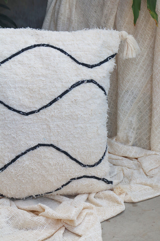 Capa de Almofada Algodão Bordada Ondas 50x50cm