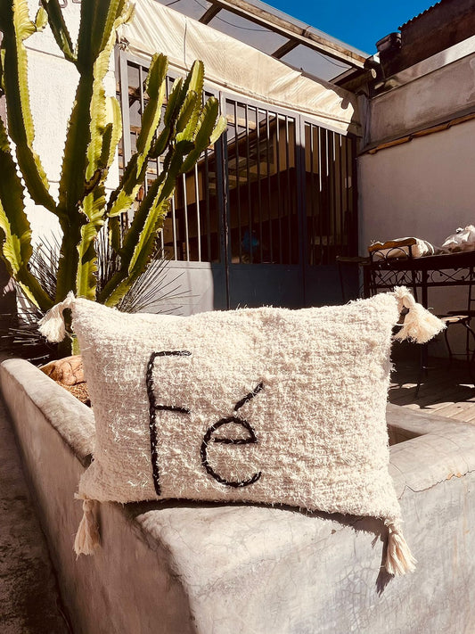 Capa de Almofada Algodão Baguete Bordada Fé Bege 30x50cm