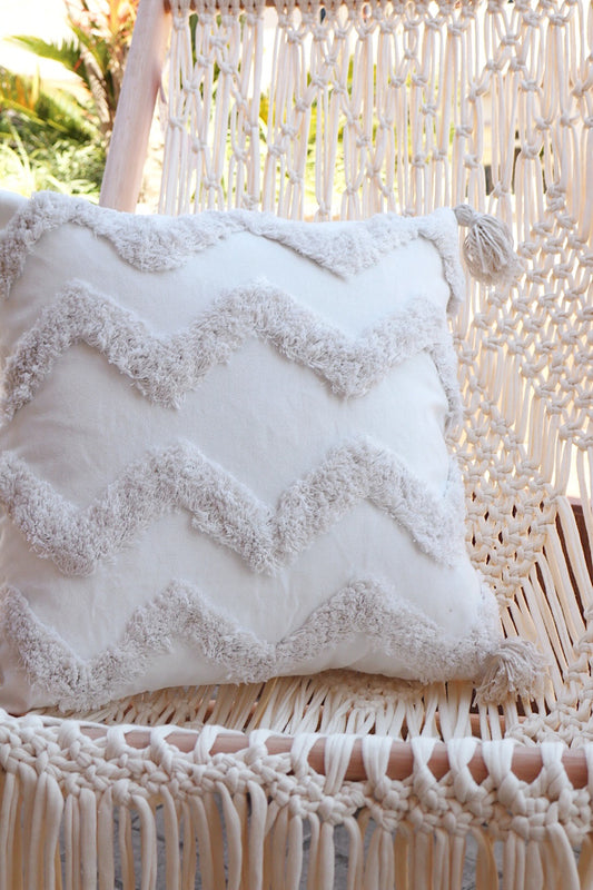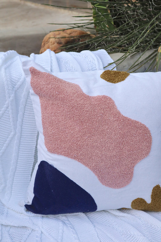 Capa de Almofada Bordada em Linho Tufada Boho 45x45 EST06