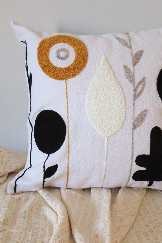 Capa de Almofada Bordada em Linho Floral Boho 45x45 EST05