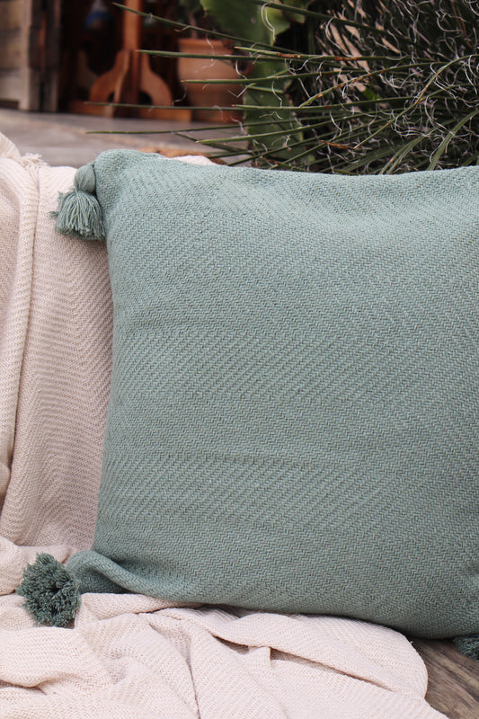 Capa de Almofada Boho Escama com Pompom Lisa Verde Menta 45x45