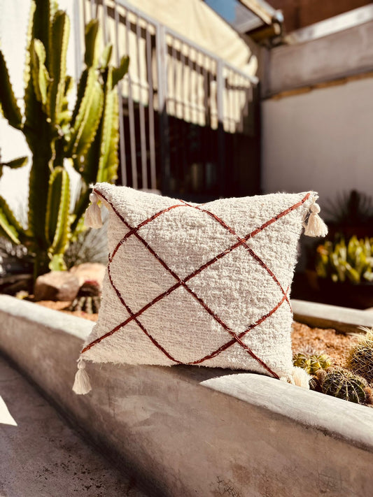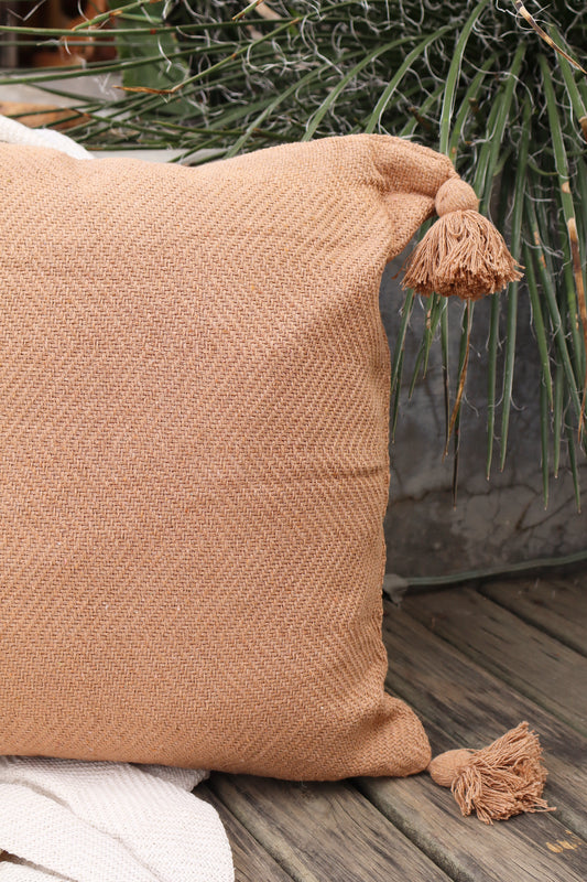 Capa de Almofada Safira Boho com Pompom Salmão 45x45
