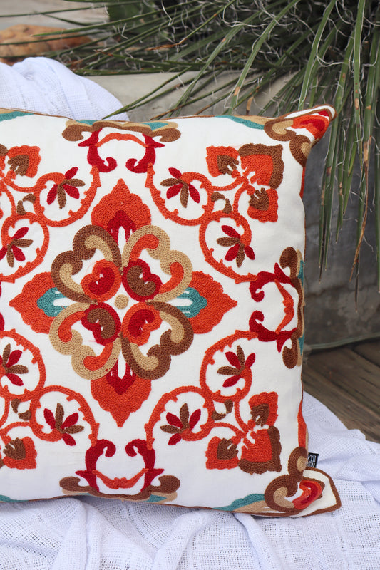 Capa de Almofada Bordada em Linho 45x45 EST04 Terracota